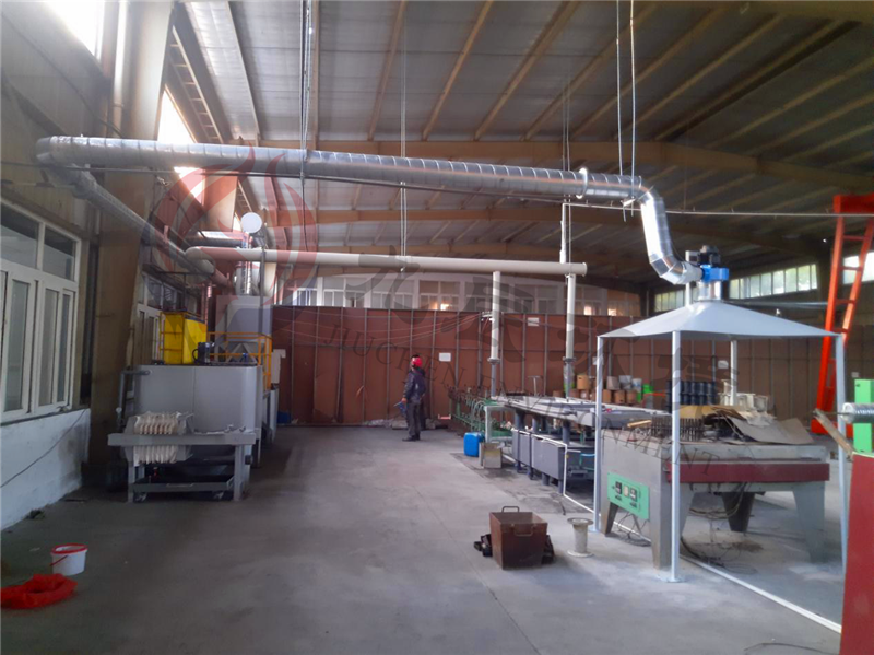該企業廠區表面處理生產線采用酸洗、水洗、酒精洗、涂錫,其中酸洗、酒精洗以及涂錫過程會導致部分揮發性有機物和煙塵無組織排放入室內空氣中,此類廢氣屬于生產性廢氣。