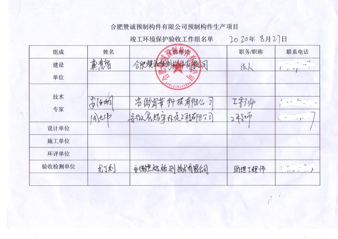 合肥贊誠預制構件有限公司預制構件生產項目竣工環境保護驗收報告公示