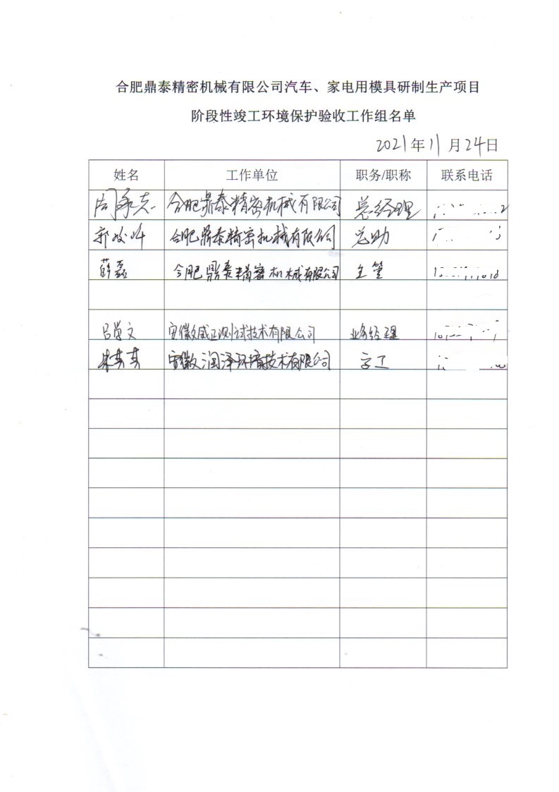 合肥鼎泰精密機(jī)械有限公司建設(shè)汽車(chē)、家電用模具研制生產(chǎn)項(xiàng)目階段性竣工環(huán)境保護(hù)驗(yàn)收?qǐng)?bào)告公示