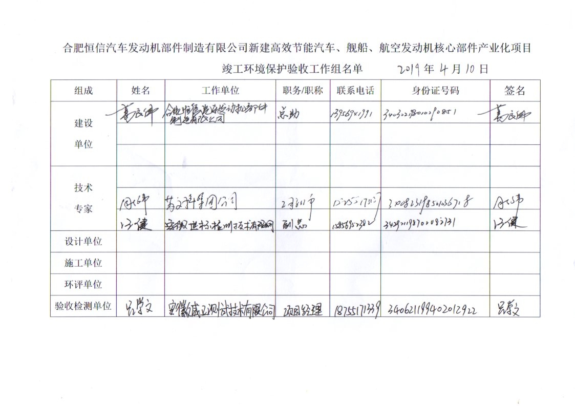 合肥恒信汽車發動機部件制造有限公司新建高效節能汽車、艦船、航空發動機核心部件產業化項目階段性竣工環境保護驗收報告公示